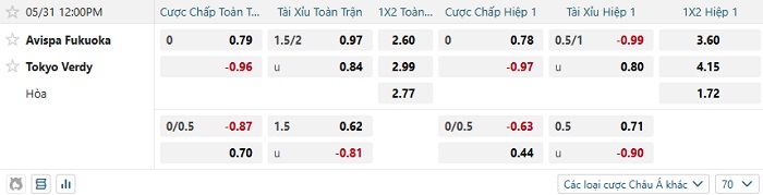 Tip kèo Châu Á full trận Avispa Fukuoka vs Tokyo Verdy