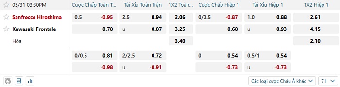 Tip kèo Châu Á full trận Sanfrecce Hiroshima vs Kawasaki Frontale