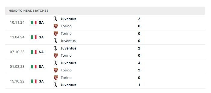 - Kèo tỷ số H2 Torino vs Juventus: 1-2