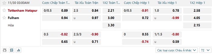 Soi kèo châu Á, kèo Tottenham vs Fulham