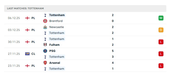 - Phong độ gần đây Tottenham