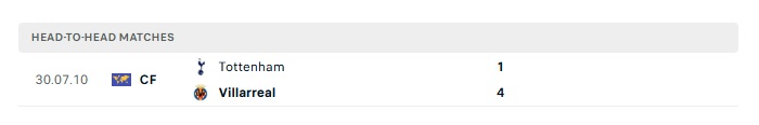 - Kèo tỷ số H2 Tottenham vs Villarreal: 1-0