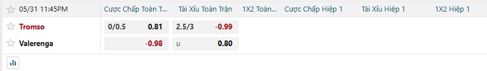 Soi kèo châu Á, kèo Tromso vs Valerenga