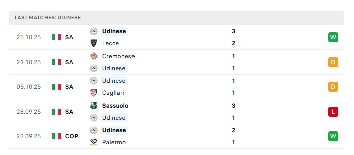- Phong độ gần đây Udinese