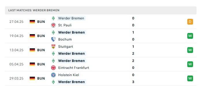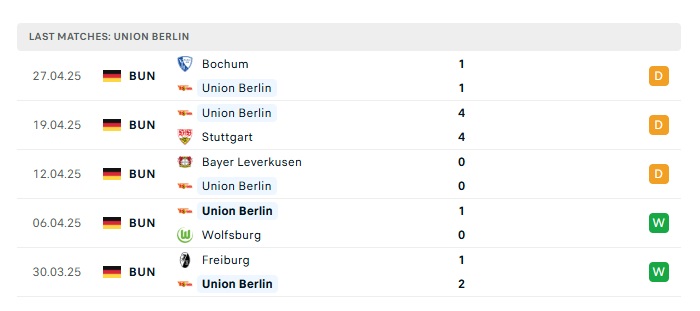 Phong độ gần đây Union Berlin vs Werder Bremen