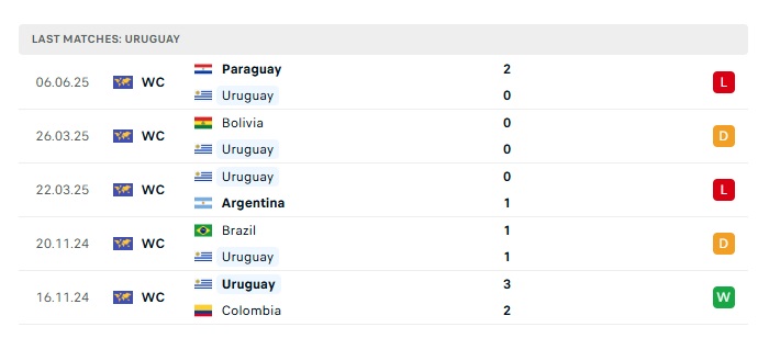 - Phong độ gần đây Uruguay