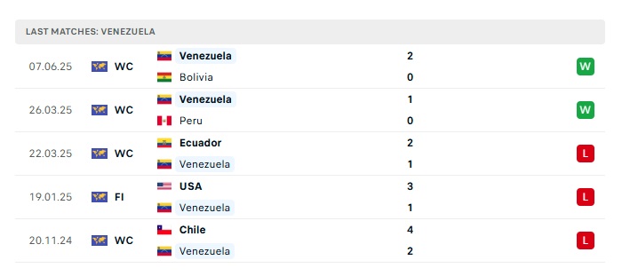 - Phong độ gần đây Venezuela