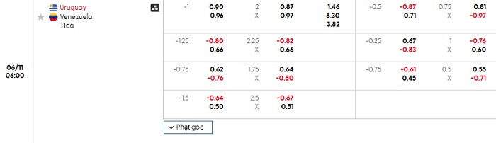 Soi kèo châu Á, kèo Uruguay vs Venezuela