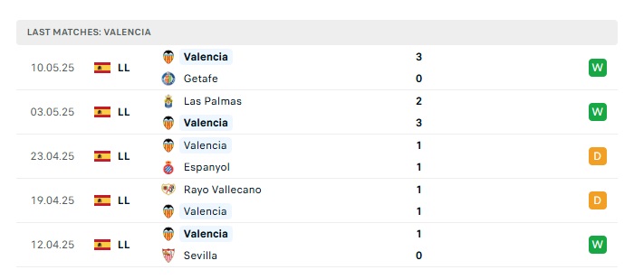 - Phong độ gần đây Valencia