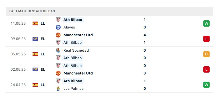 - Phong độ gần đây Athletic Bilbao