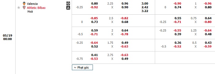 Soi kèo châu Á, kèo Valencia vs Athletic Bilbao
