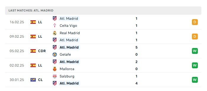 - Phong độ gần đây Atletico Madrid