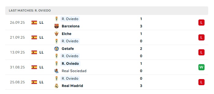 - Phong độ gần đây Real Oviedo