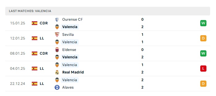 • Phong độ gần đây Valencia