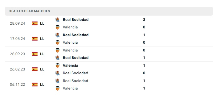 Lịch sử đối đầu Valencia vs Real Sociedad