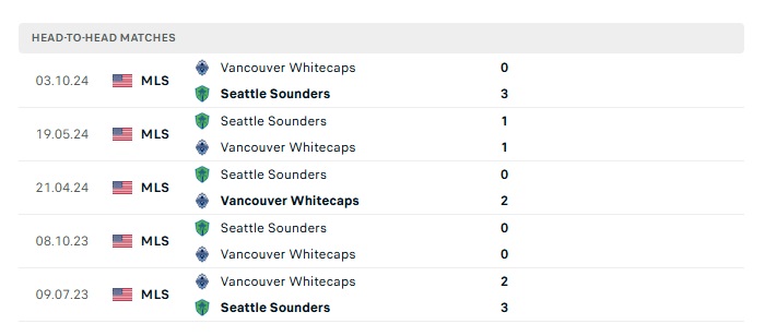Lịch sử đối đầu Vancouver WC vs Seattle Sounders