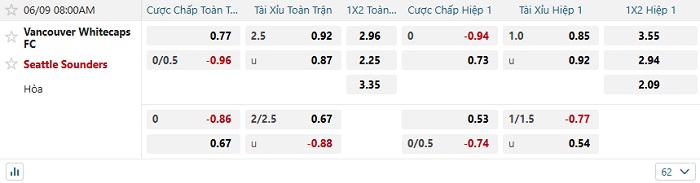 Bảng tỷ lệ kèo bóng đá hôm nay Vancouver WC vs Seattle Sounders