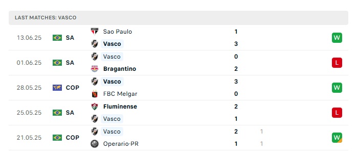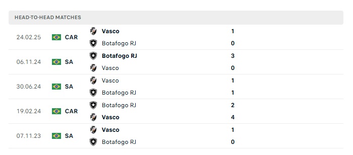 Phong độ gần đây Vasco vs Botafogo/RJ