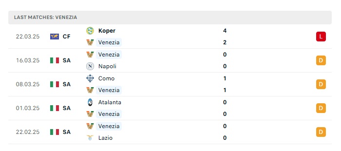- Phong độ gần đây Venezia