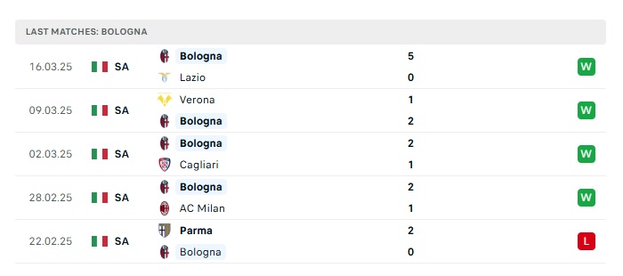 - Phong độ gần đây Bologna