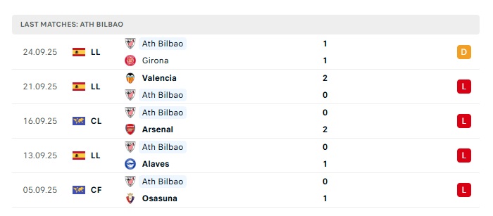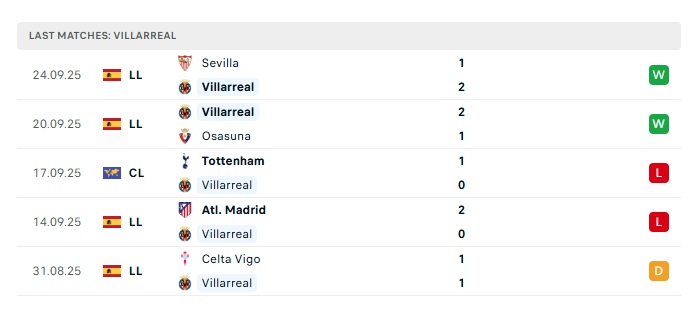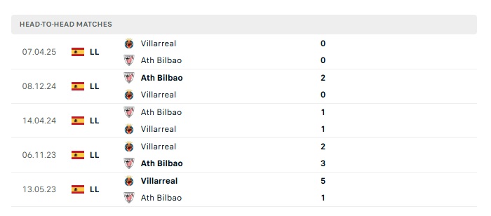 Phong độ gần đây Villarreal vs Athletic Bilbao
