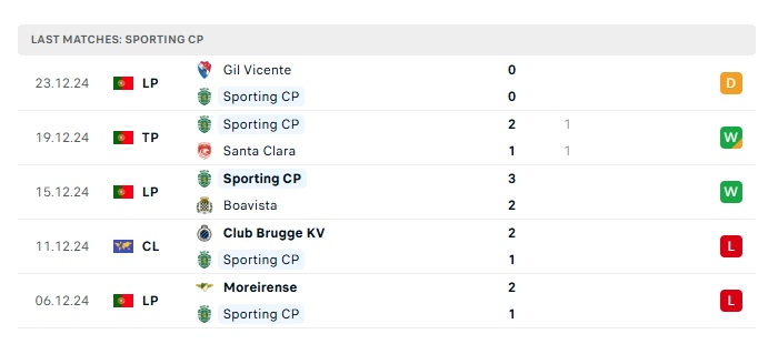 - Phong độ gần đây Sporting Lisbon