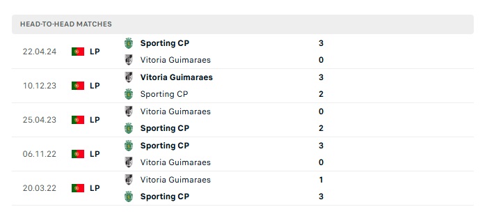 Lịch sử đối đầu Vitoria Guimaraes vs Sporting Lisbon