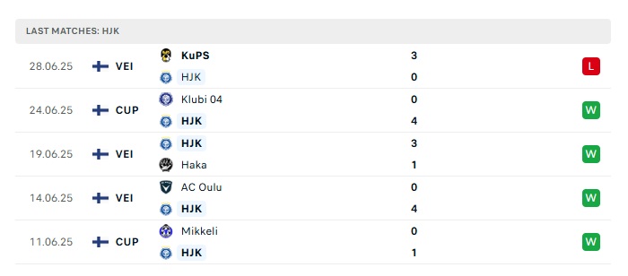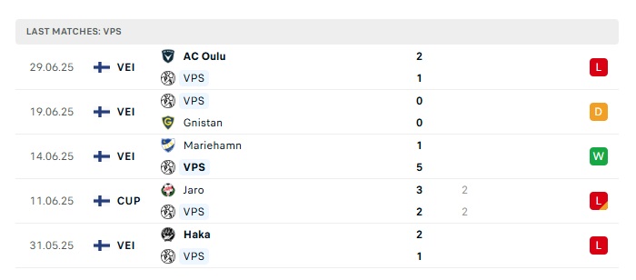Phong độ gần đây VPS Vaasa  vs Helsinki
