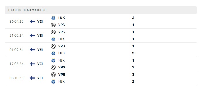 Lịch sử đối đầu VPS Vaasa vs Helsinki