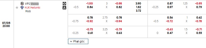 Soi kèo châu Á, kèo VPS Vaasa vs Helsinki