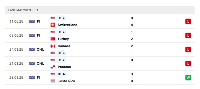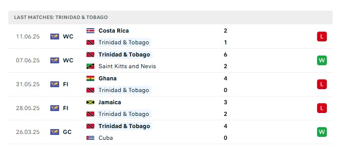 Phong độ gần đây Mỹ  vs Trinidad & Tobago