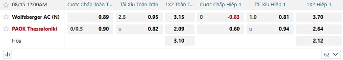 - Kèo tỷ số H1 Wolfsberger AC vs PAOK: 0-0