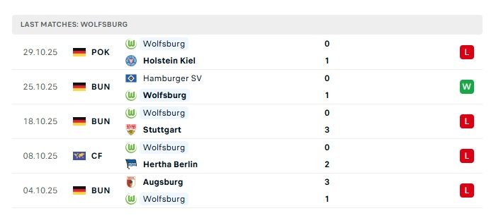 Phong độ gần đây Wolfsburg vs Hoffenheim