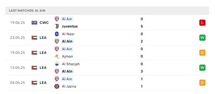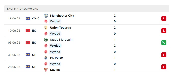 Phong độ gần đây Wydad Casablanca vs Al Ain