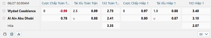 Bảng tỷ lệ kèo bóng đá Wydad Casablanca vs Al Ain